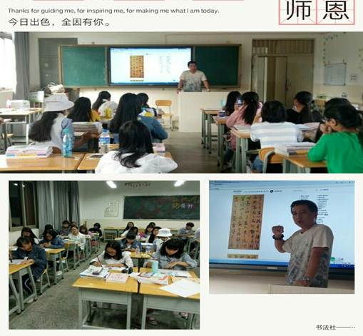 书法社主要由杜会兰和周梦负责,活动时间于每周一、三下午3:00~4:00举行,韩书记会定期给同学们上课,这一活动增强了我系学生对中国文化的理解,提升大家的审美能力,也加强了同学的耐心,渐渐的除去了同学们的一些浮躁,得到了心灵的安宁,从中受益匪浅。