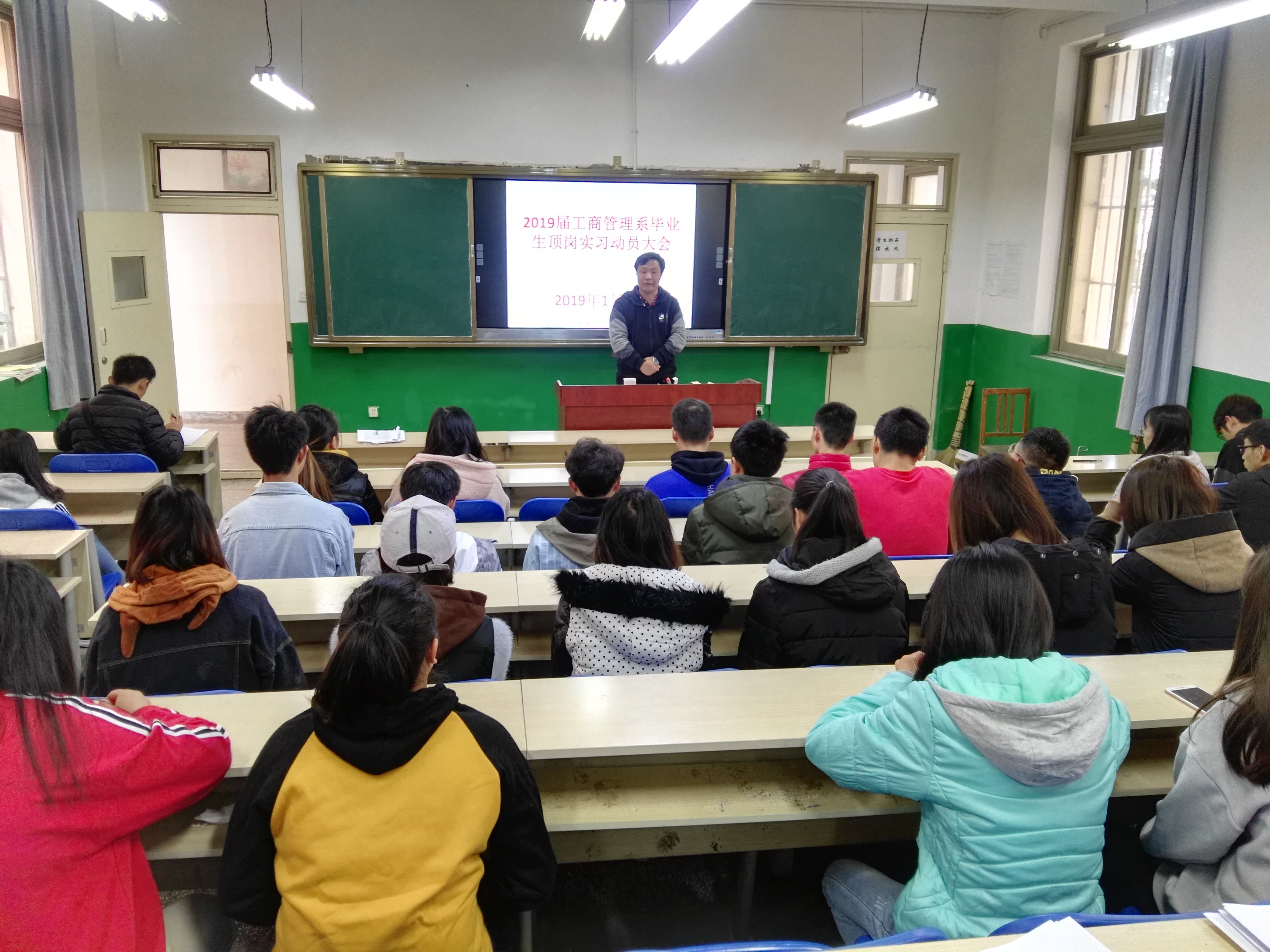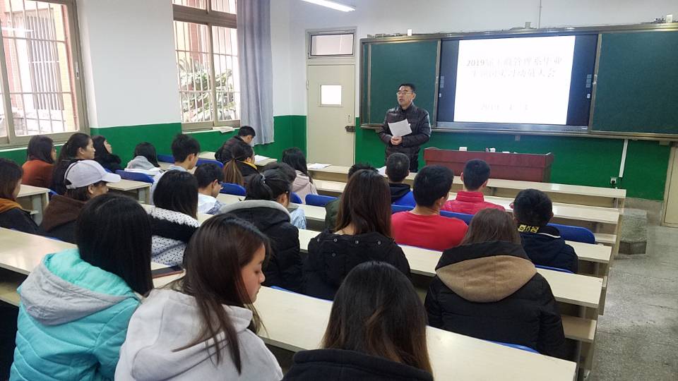 2019年1月3日上午,工商系在勤奋院教学楼115教室召开了2016级毕业生顶岗实习动员会。工商系主任王兆远、支部书记董俊、物流管理教研室主任潘国平和2016级物流管理、电子商务专业66名同学参加动员会。