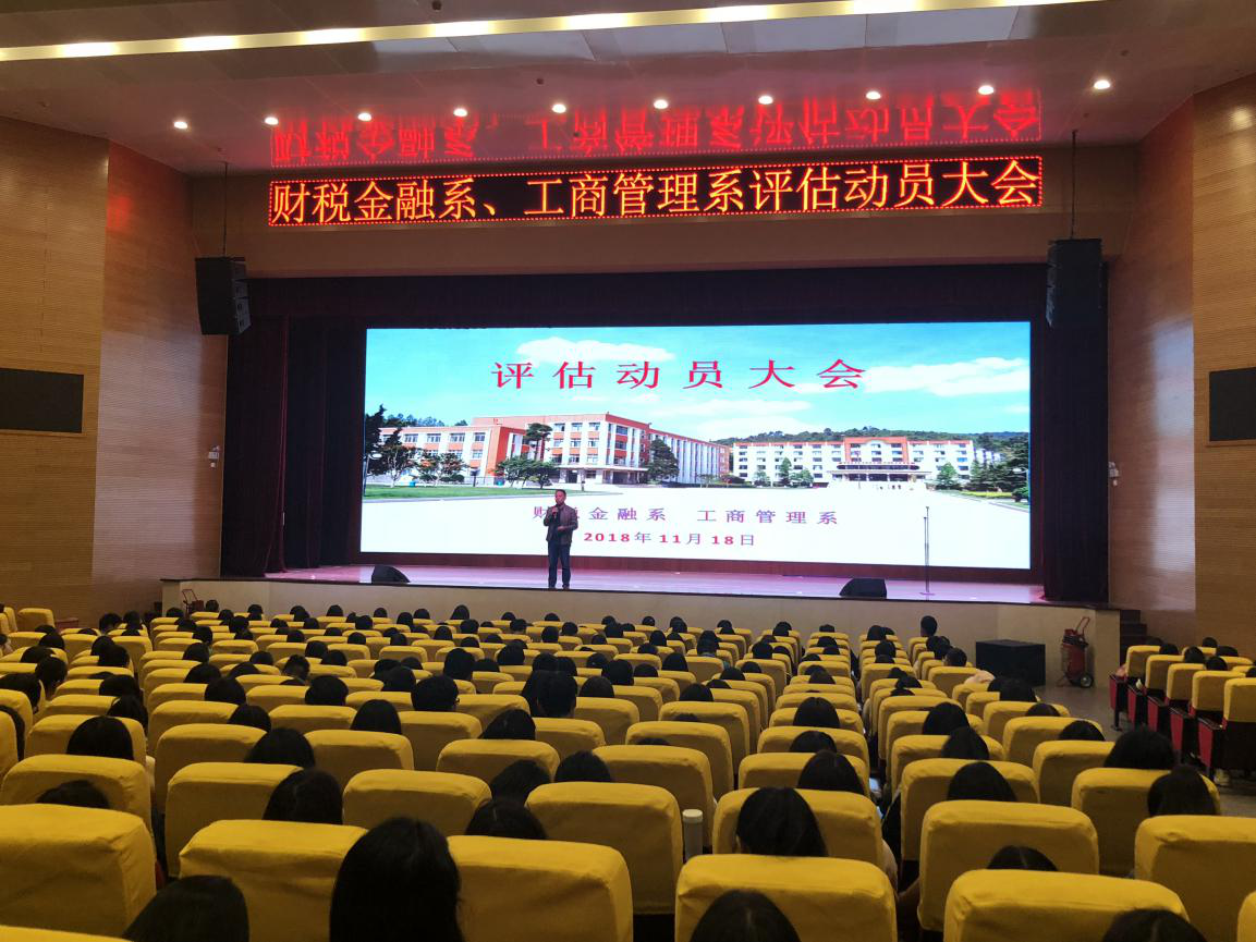 2018年11月19日,云南省教育厅委托的专家组将进入学校,对学校人才培养工作进行评估。为了顺利完成评估工作,使学校两年多来对人才培养工作评估的准备有一个圆满结果,工商系于10月17日晚7点30分召开全系学生大会,对评估工作进行动员部署。全系学生及辅导员、班主任400多人参加大会,会议由工商系党部书记董俊主持。