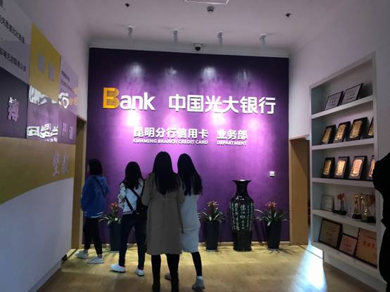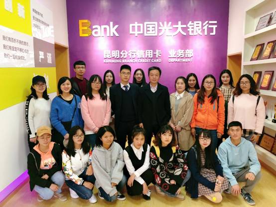 2018年12月27日,校企合作处和我系的两名老师带领16级金融管理专业和投资理财专业的16名同学到光大银行昆明分行信用卡中心参观学习。