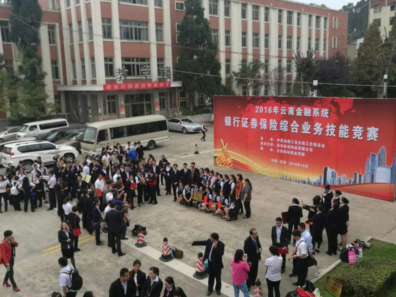 10月16日上午,天高云淡,风和日丽,云南财经职业学院校园内气氛紧张而激烈。来自云南省各金融系统代表队的211名选手齐聚我院实训楼,参加由云南金融工会主办的2016年云南省金融系统银行证券保险综合业务技能竞赛。此次综合业务技能大赛得到云南银监局、云南金融工会的高度重视,相关领导专程来到比赛现场观摩。