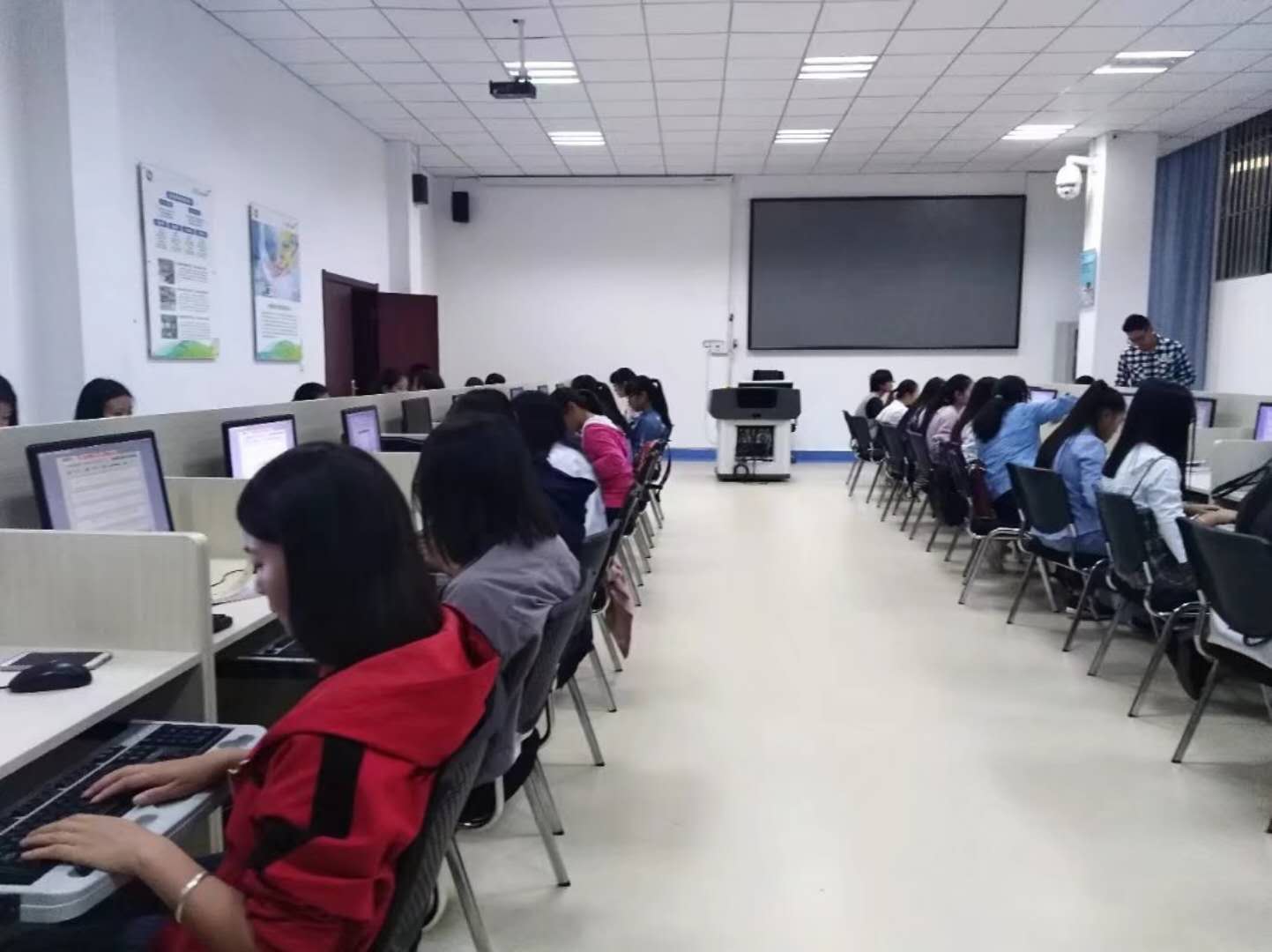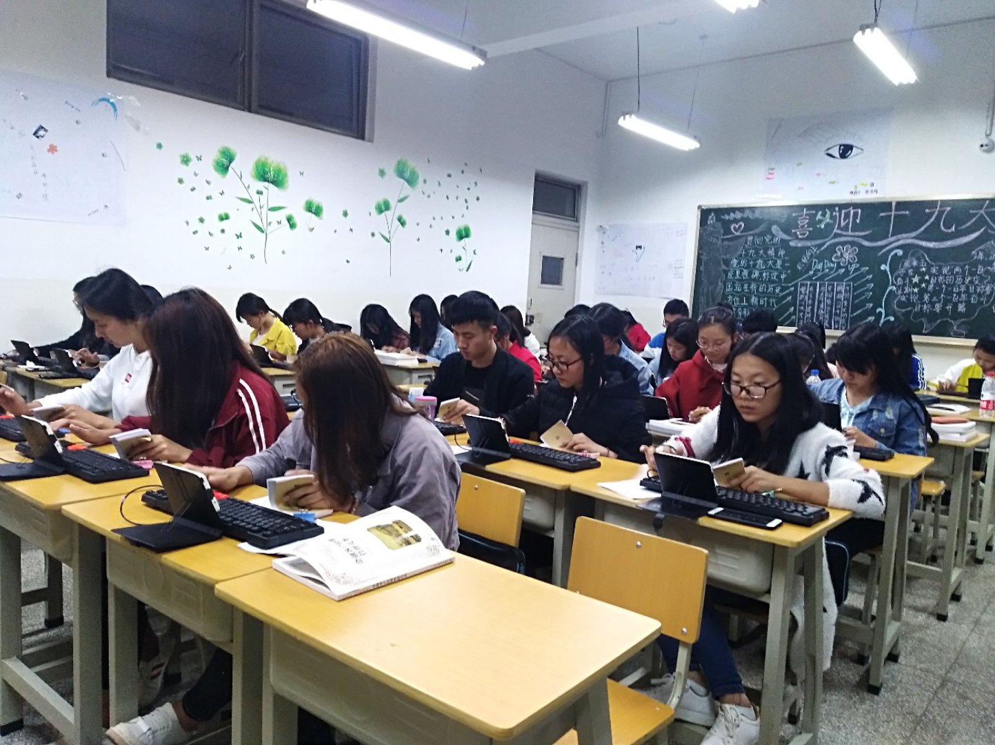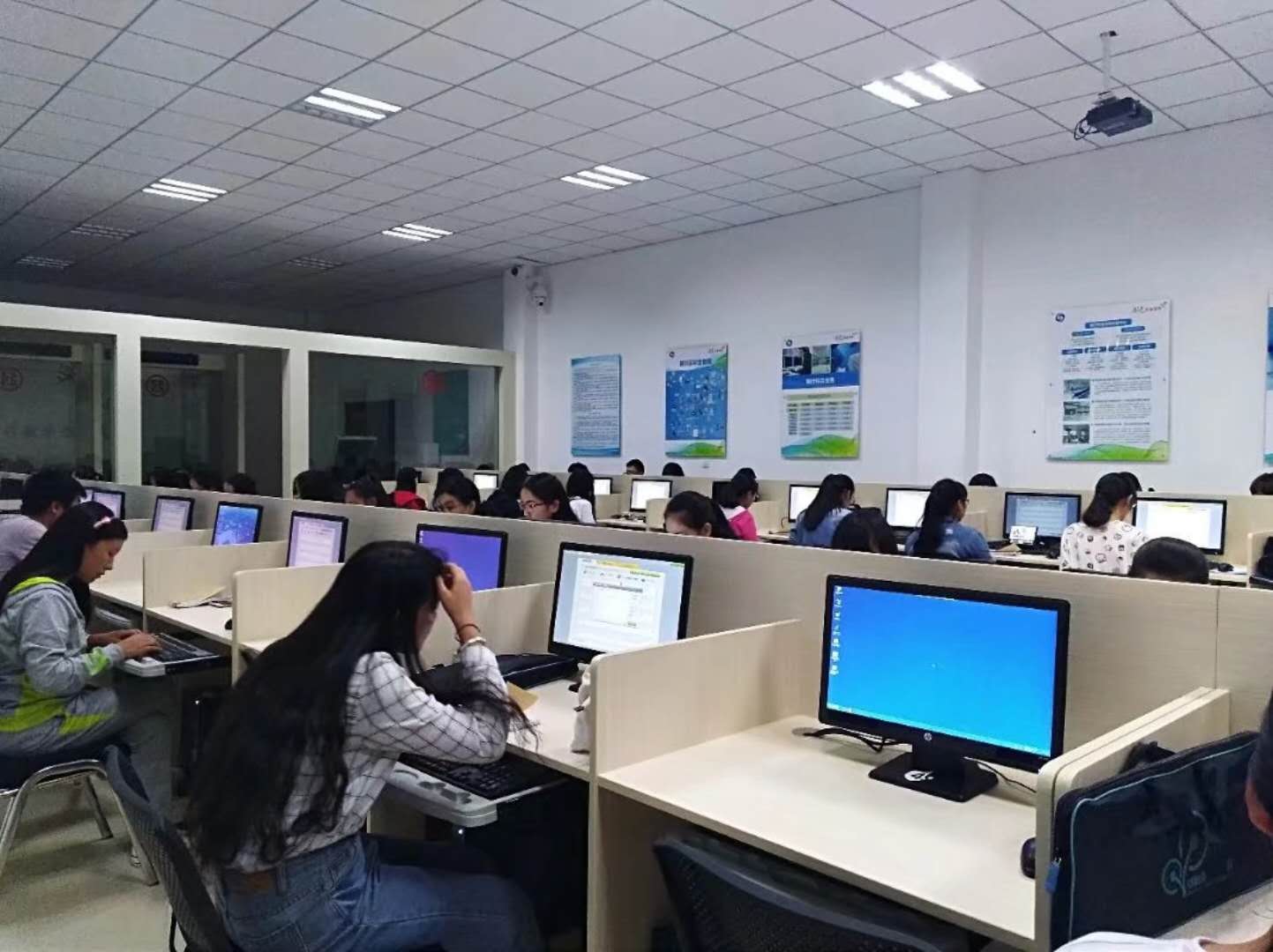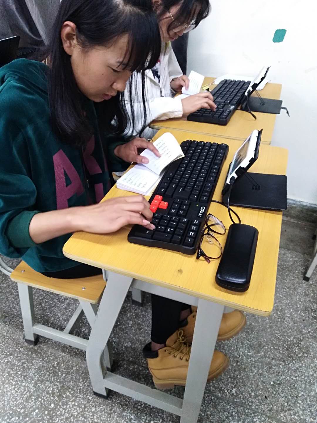 以上两图为金融技能社团同学在实训楼102教室训练的场景。