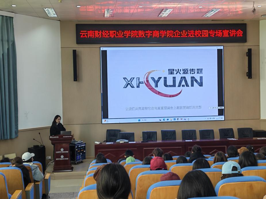 数字商学院高度重视学生实习就业工作,坚持将“促就业、稳就业”作为重点任务扎实推进。本次活动严格遴选并邀请了云南星火源传媒科技有限公司、昆明新亚企航房地产经纪有限公司、云南方信科技有限公司、东莞新能德科技有限公司四家企业到场宣讲。企业涵盖传媒科技、房地产经纪、信息技术、新能源等多个领域,与相关专业契合度高,为学生提供了多元化的发展平台和转正就业机会。