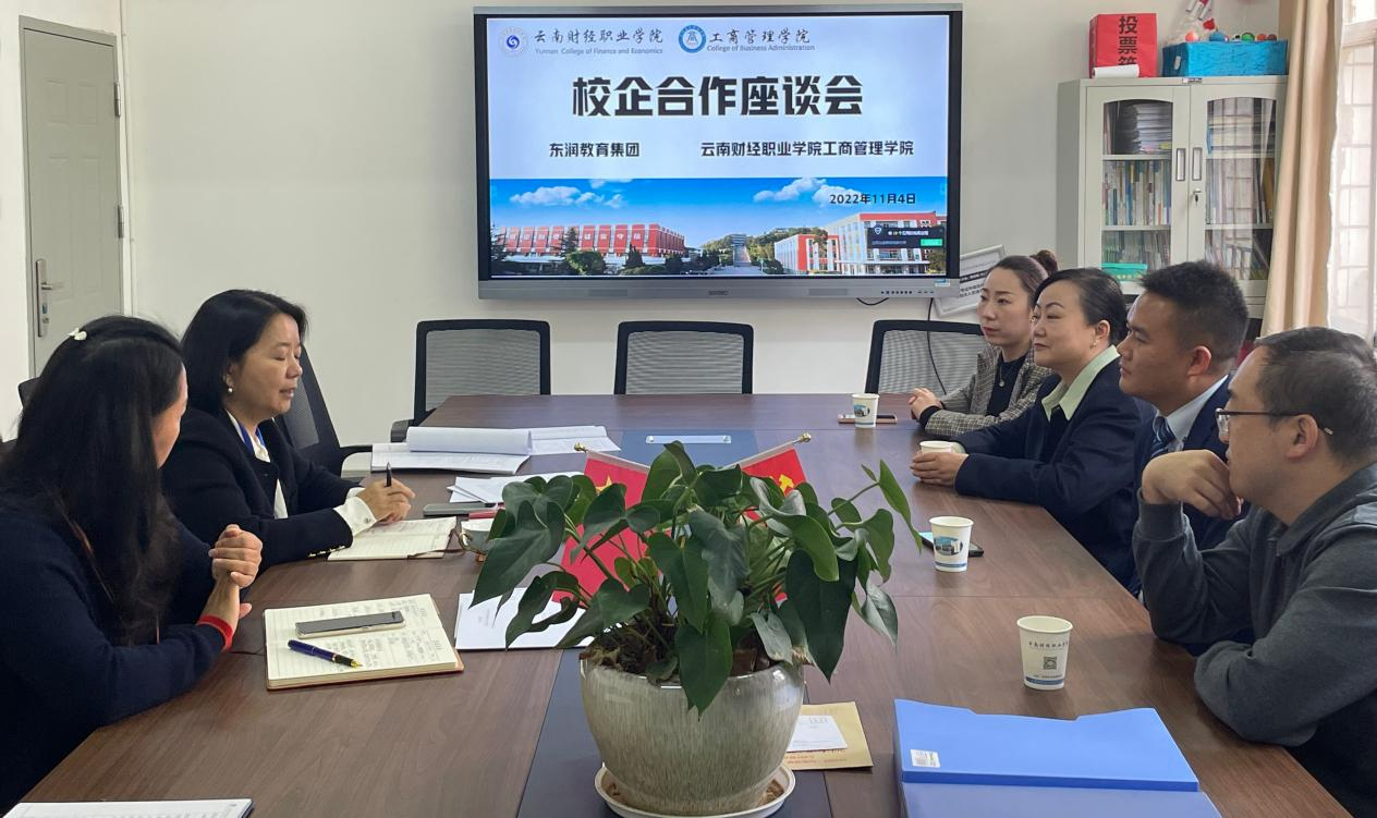 2022年11月1日至4日,工商管理学院与云南实力慧铭实业集团有限公司和东润教育投资管理集团进行了校企合作面对面座谈交流。