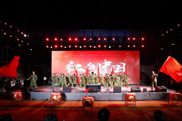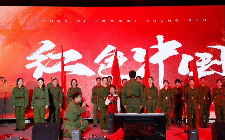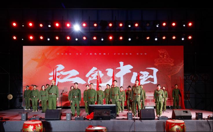 在众多精彩纷呈的节目中,信息工程学院教师团队带来的“红色中国”节目尤为引人注目。节目由四位学院领导、一位校企合作领导及一位拥有30年教龄的老教授率先登场,他们身着笔挺的军装,神情庄重而肃穆,用饱含深情的语调朗诵了歌颂祖国、赞美党的诗文。他们的朗诵声情并茂,铿锵有力,字字句句都透露出对党和祖国的无限热爱,赢得了现场师生的阵阵掌声和热烈喝彩。随后,信息工程学院全体教师身着统一的军装,在六位领导的带领下,齐声高唱《没有共产党就没有新中国》。他们饱含热情、信念坚定,用激昂有力的歌声表达了对党的无限忠诚和对祖国的深厚情感,激发了每一位在场师生的爱国热情,将晚会推向了高潮。