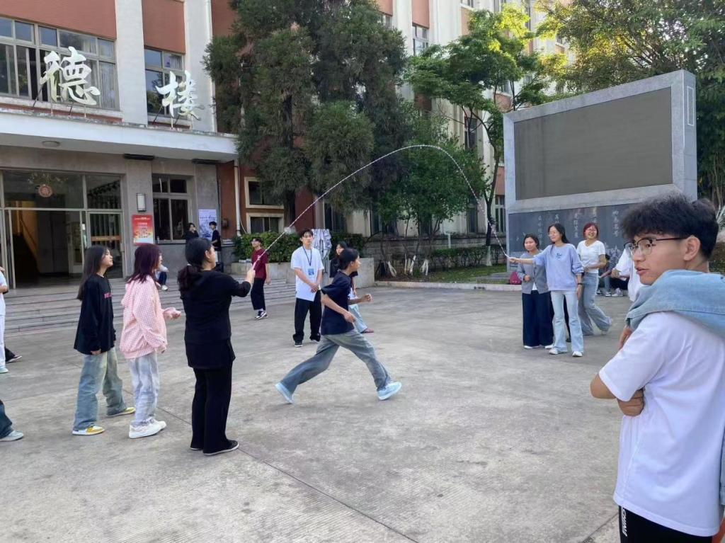 为深入贯彻落实国家体育总局办公厅《2025年群众体育工作要点》文件精神,践行“运动促进健康”理念,推进校园体育文化建设,4月16 - 17日,云南财经职业学院数字商学院在立德楼前广场举办跳长绳比赛,全校各班级积极参赛,共同演绎了一场活力四射的体育盛宴。