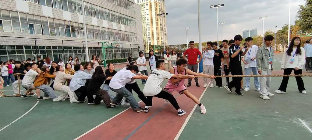 2025年4月23日至25日,云南财经职业学院数字商学院在龙泉校区齐心院篮球场成功举办了第五届新生拔河比赛,本次比赛以“绳舞飞扬,力拔山河”为主题。