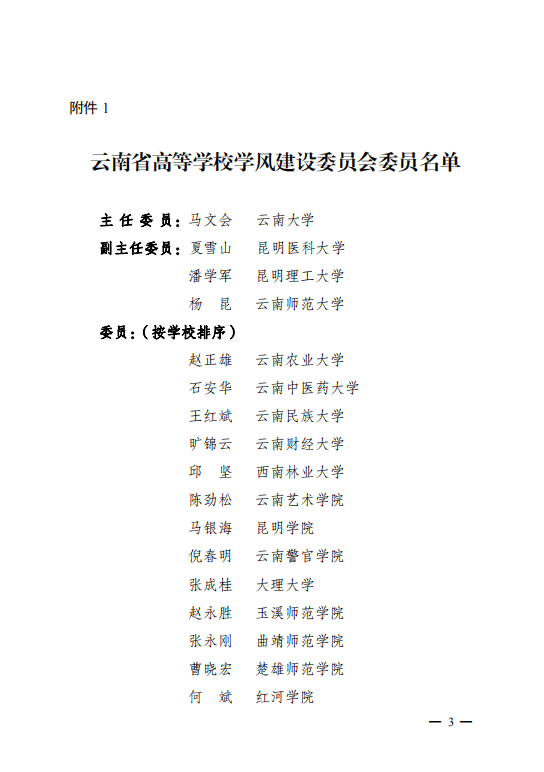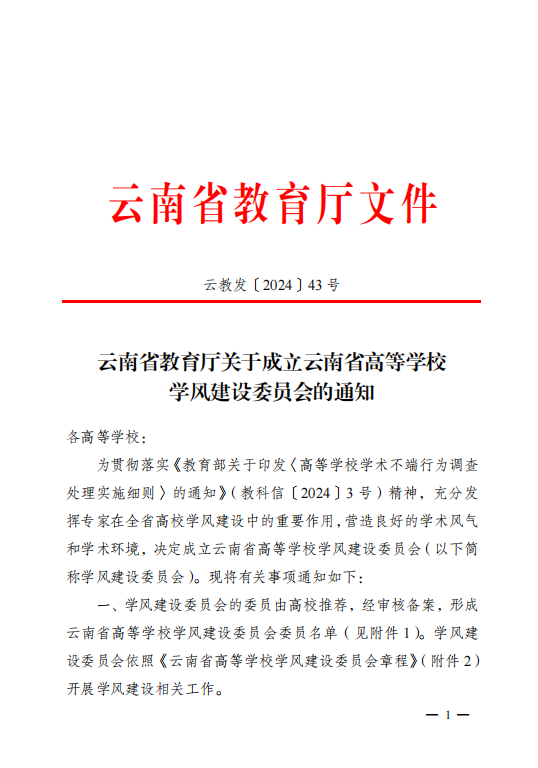 云南省教育厅关于成立云南省高等学校学风建设委员会的通知