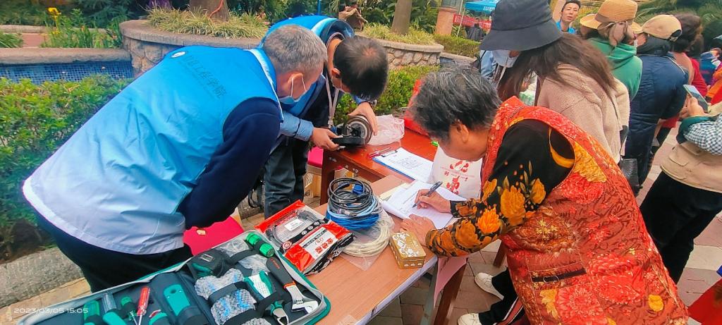 2023年3月5日,云南财经职业学院信息中心和信息工学院部分教师党员,参加了龙锦社区开展的“联合大党委共驻共建”的社区党员志愿服务,在辖区的荷塘月色小区开展了学雷锋志愿服务活动,为小区住户提供信息化设备维修、老年人智能手机使用指导等服务。