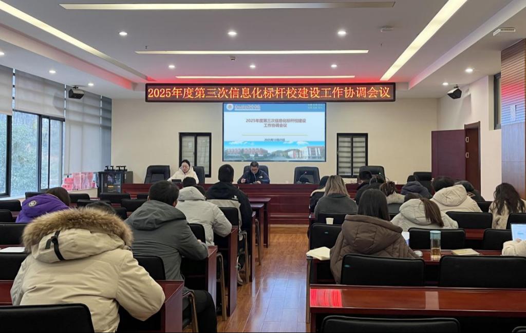 为全面推动信息化标杆校建设进展,精准部署下阶段重点任务,2025年12月25日,我校召开了2025年第三次信息化标杆校建设工作协调会议。副校长严黄一仪出席会议并讲话,各相关部门负责人及数据上报专员参会。