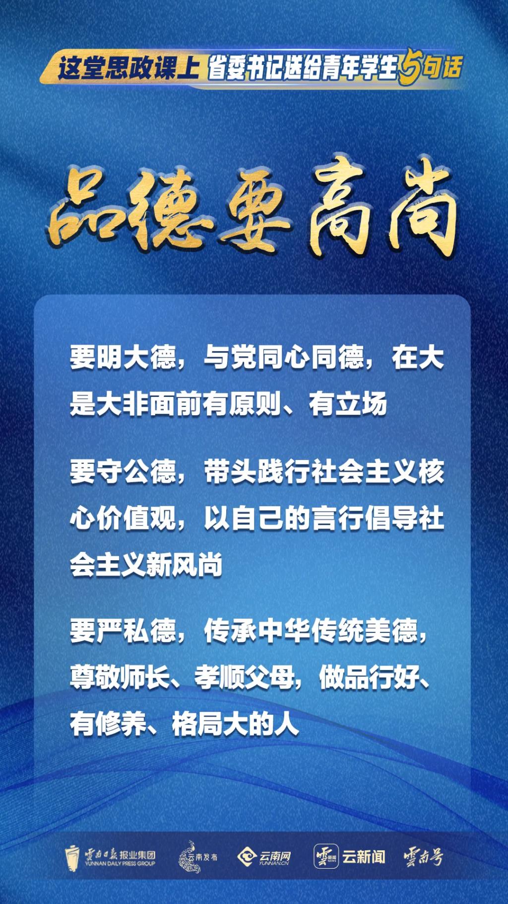 10月11日,省委书记王宁到云南民族大学作形势政策报告、讲授思政课,与我省高校师生共同深入学习习近平总书记给普洱民族团结誓词碑盟誓代表后代重要回信、在全国教育大会上的重要讲话精神,宣讲党的二十届三中全会精神,勉励全省广大青年学生坚定信仰信念信心,立报国强国大志向、做挺膺担当奋斗者,在云南改革发展的生动实践中激昂青春、拼搏奉献,在强国建设、民族复兴伟业中书写精彩人生。