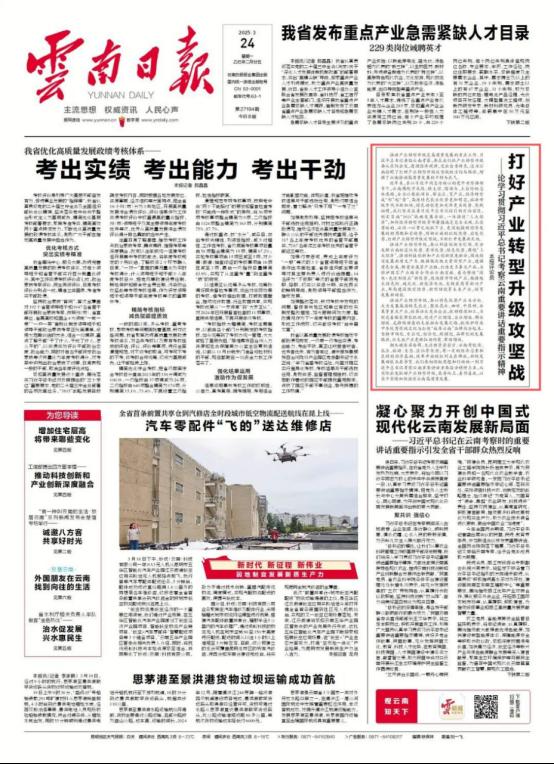 《云南日报》刊评:打好产业转型升级攻坚战——论学习贯彻习近平总书记考察云南重要讲话重要指示精神