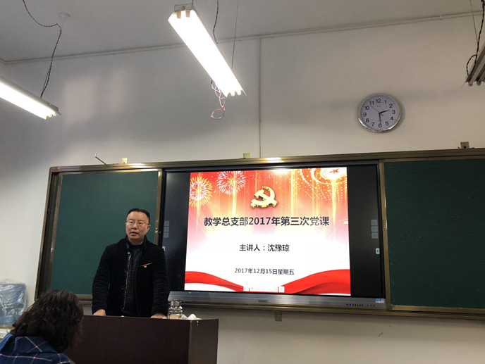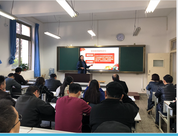 2017年12月15日下午14:30分云南财经职业学院教学总支部组织开展了以题为“十九大新党章学习”的党课教育活动。本次会议由教学总支部书记习强同志主持,学院党委委员、副院长沈豫琼同志主讲。教学总支部除上课教师外,全体党员同志均参加了此次党课教育。同志们仔细聆听,认真记录。本次党课内容围绕“十九大新党章”展开,这次修订开启了党的伟大事业的新篇章,激活了推动历史进步的巨大能量。把十九大报告确立的重大理论观点和重大战略思想写入了党章,是党章的再完善,是党的理论武装的再升级,是新形势下党治国理政的必然要求。我们务必切实认真学习新修订后的党章,坚持党的领导,发挥党组织的战斗堡垒作用和党员的先锋模范作用。本次党课沈豫琼同志主要围绕以下三方面宣讲: