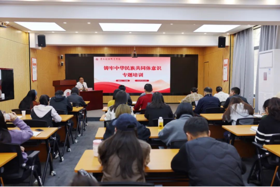 为深入学习贯彻习近平总书记关于加强和改进民族工作的重要思想,贯彻落实习近平总书记给普洱民族团结誓词碑盟誓代表后代的重要回信精神,切实肩负起教育工作和民族工作双重使命,自觉主动肩负起铸牢中华民族共同体意识教育重任,我校于2025年3月14日开展铸牢中华民族共同体意识专题培训,由纪委书记马加巍担任主讲。