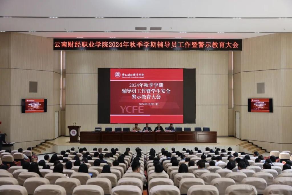 为进一步加强辅导员队伍建设,提升学生工作水平,促进学校德育工作高质量发展,云南财经职业学院于2024年10月31日召开2024年秋季学期辅导员工作暨警示教育大会。学校党委副书记仲新主持,党委委员、纪委书记马加巍出席会议。