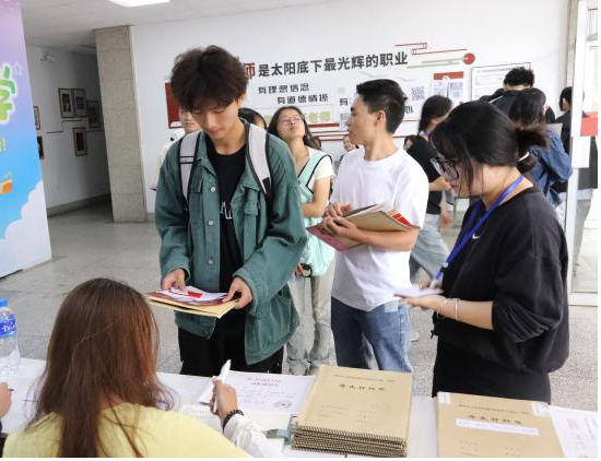 尽心布置,凸显关怀。为营造欢快而热烈的迎新氛围,学院精心布置迎新报到场地。在报到地点,学院特地准备了打卡签名墙、“踏入校园、追逐梦想”等创意展板和合影墙互动体验,新生和家长纷纷驻足拍照,营造出校园的一道亮丽风景线。