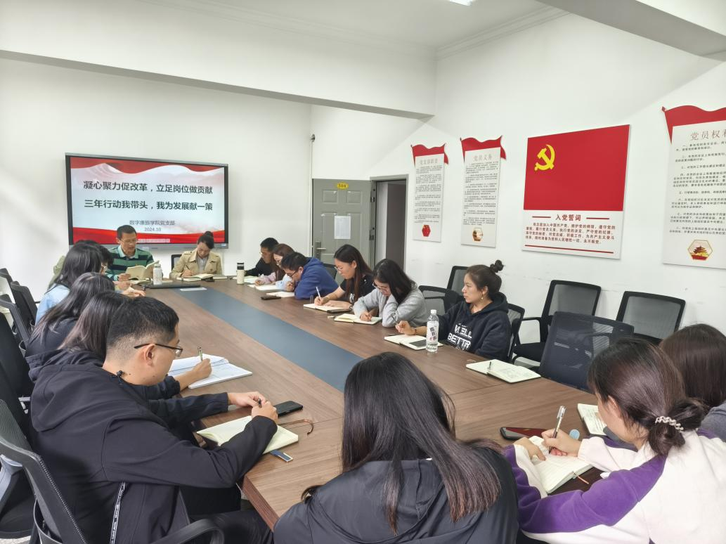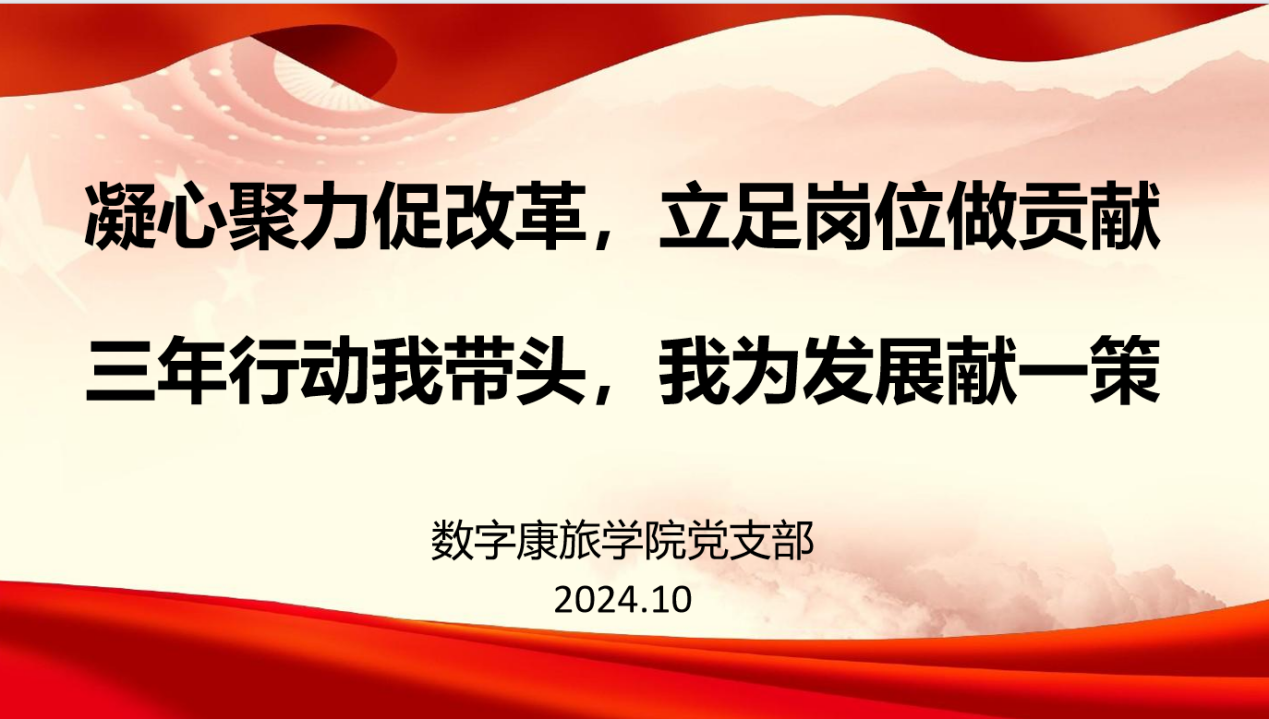 2024年10月17日数字康康旅学院党支部积极响应学校号召,开展“凝心聚力促改革、立足岗位做贡献,三年行动我带头、我为发展献一策”活动,旨在汇聚全院师生智慧,为学院长远发展注入新动力,掀起了一场共商共建共享的发展热潮。