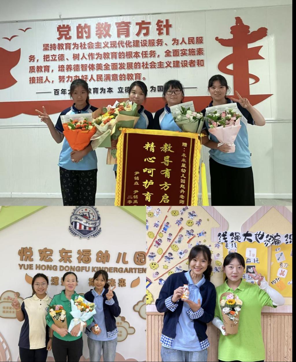 园长们提到:你们既是学生,也是孩子们眼中的小老师,更是幼教行业未来的希望。希望你们能以此为契机,深刻感受教师职业的使命与幸福。现场气氛温馨感人,实习生们手捧鲜花,笑容洋溢,纷纷表示这是他们第一次以准教师的身份度过教师节,倍感荣幸与鼓舞。