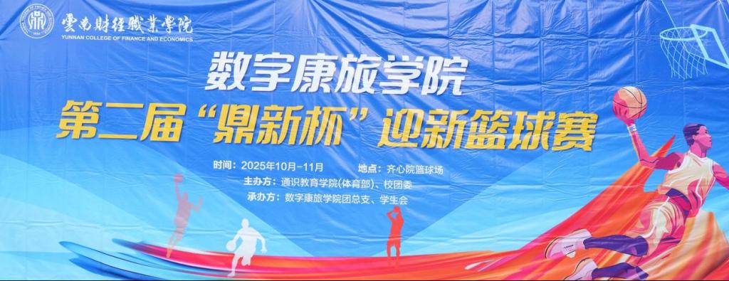2025年12月11日下午18时,数字康旅学院第二届“鼎新杯”迎新篮球赛在云南财经职业学院齐兴院奋进篮球场隆重开幕。
