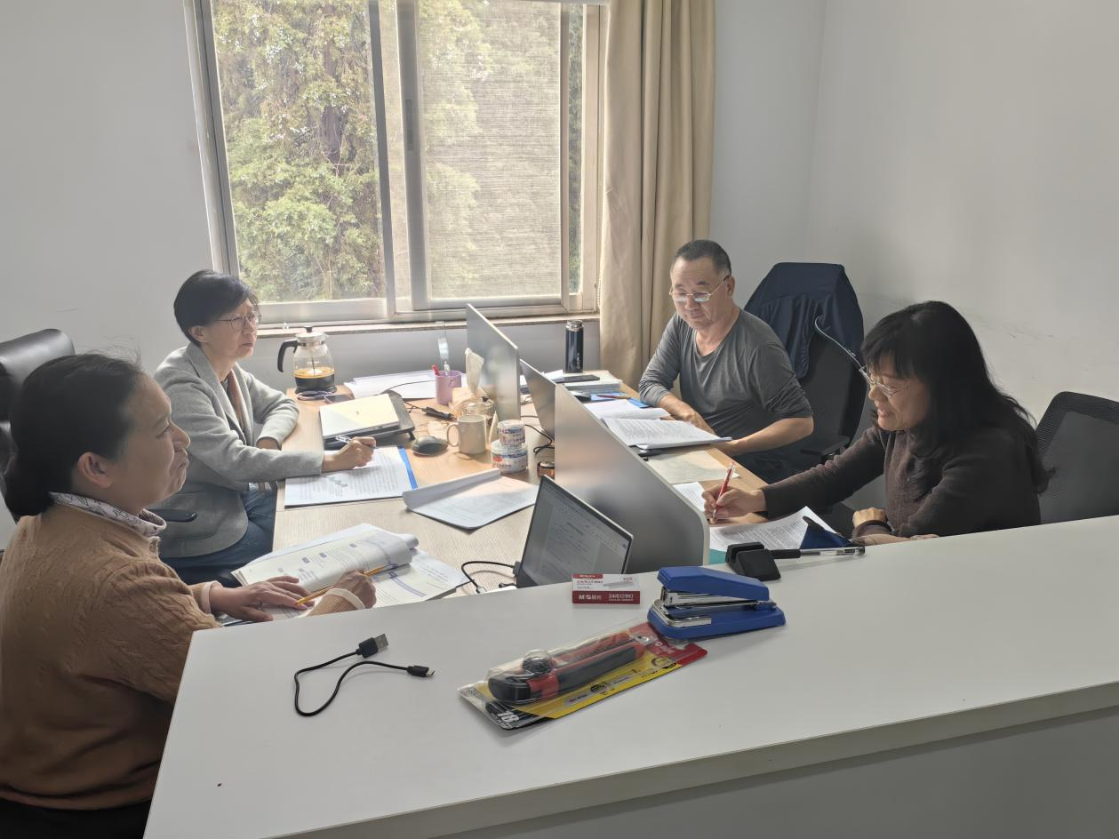 会议第一阶段由杨青教授组织银龄教师李琦、余莎莎、孙秀山结合专业特色、专业发展、专业群组群逻辑等内容讨论申报材料并提出修改意见。