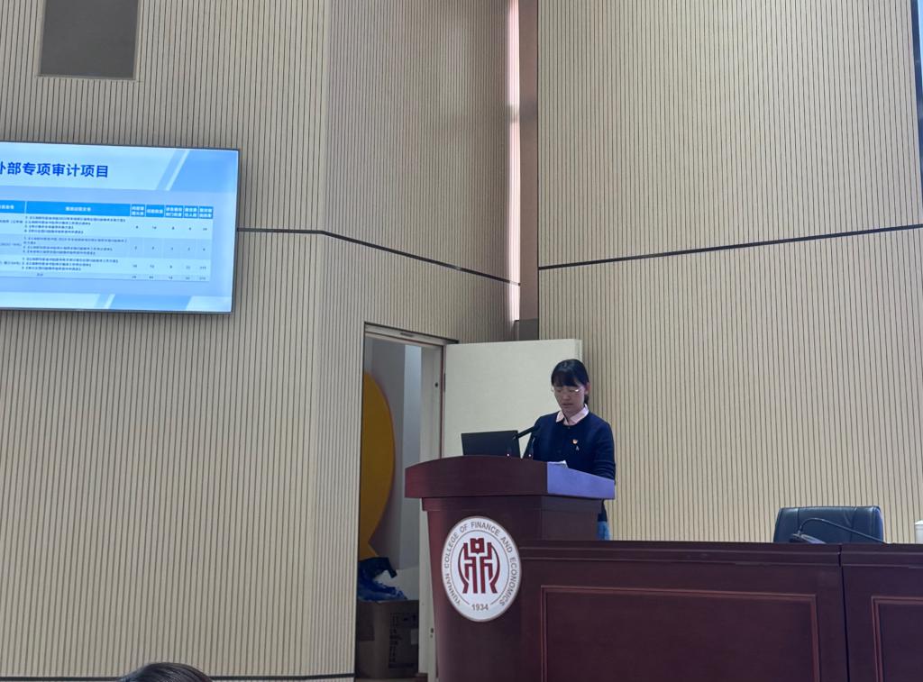 审计处副处长杨雨杉作“2022—2025年审计工作汇报”。外部专项审计项目方面,审计处自2021年5月从原监察审计处的监察职能剥离,独立设置审计处,专职履行内部审计职能以来,学校接受上级部门专项审计3次,在3个专项审计中反馈的89个问题,已完成整改86个,总体完成率为96.63%。校内审计项目方面,2023年以来,审计处与会计师事务所协同完成20个工程项目的竣工决算审计,审定金额约33,205.35万元;完成21位离任干部经济责任审计,规范国有资产管理,防范廉政风险,整改问题63个,规范学校财务管理和资产管理。同时,针对校内审计呈现出的财务管理、会计核算、资产管理、校企合作、合同管理、招投标管理、工程管理6个方面的问题,杨雨杉副处长结合学校实际,对标国内高校存在的共性问题提出建议。