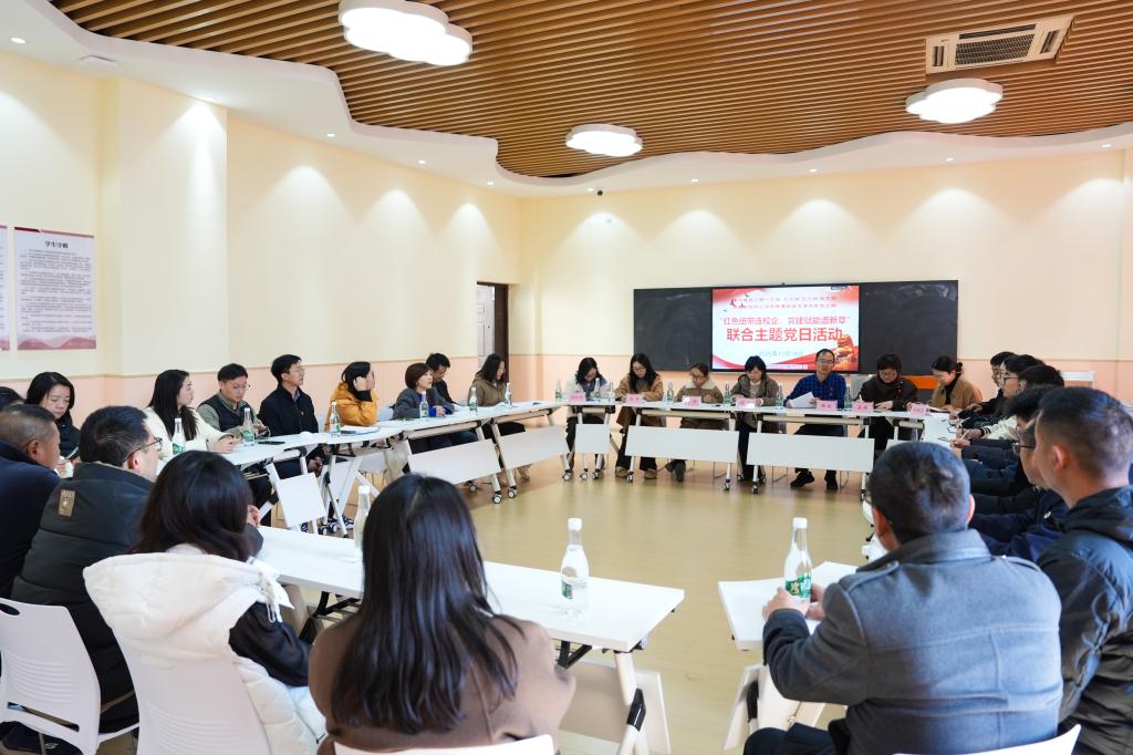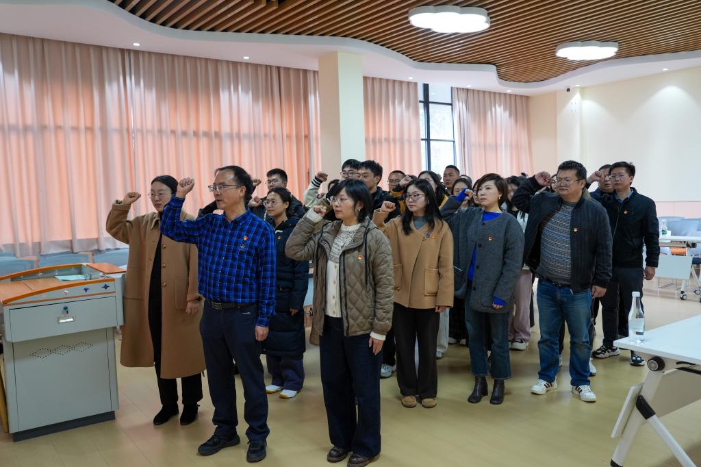 本次主题党日活动开展了丰富的理论学习。在“第一议题”中,深入学习《求是》杂志发表习近平总书记重要文章《扩大内需是战略之基》。专题学习中,五个支部的党员共同节选学习了《创新实干促发展》、《习近平谈治国理政》(第五卷)、《中华民族共同体概论》、《中国共产党简史》等内容,并进行简要讨论和分享。活动中,全体参会党员面对党旗重温入党誓词。通过学习,党员同志增强党员意识,提升了理论素养,为党建引领业务发展、校企合作注入精神动力。