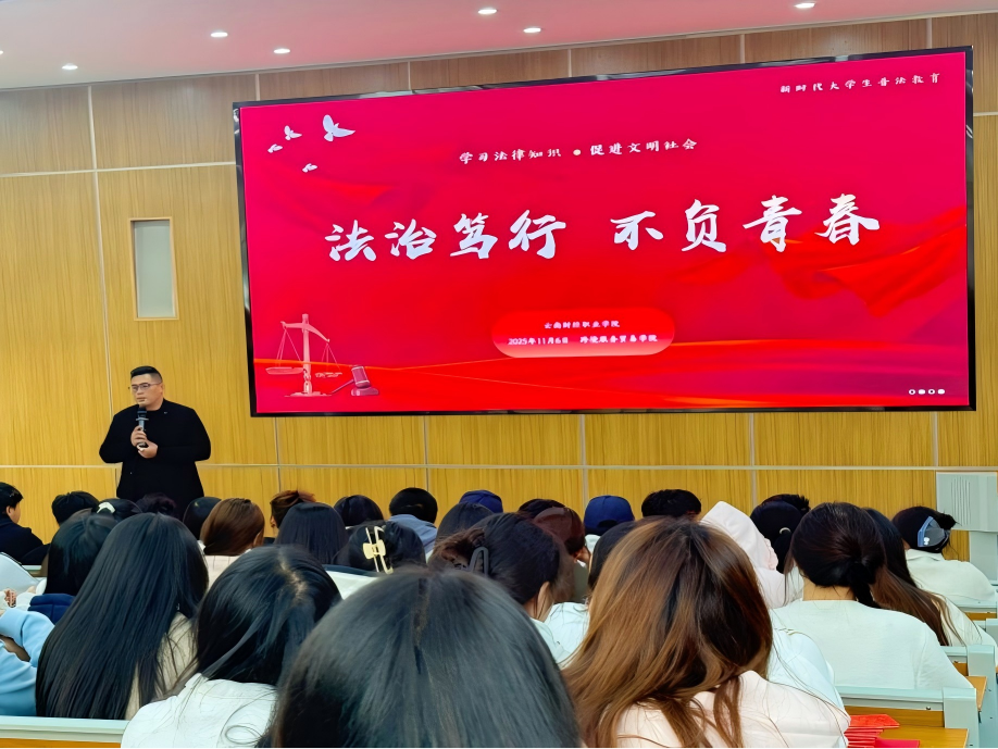 为深入学习贯彻习近平法治思想,扎实推动国家“八五普法”规划在校园落地见效,切实筑牢青年学生的法治思想根基、提升法治素养,在学院党支部的精心统筹指导与全力支持下,2025年11月6日,云南财经职业学院跨境服务贸易学院以线下专题授课的形式,成功举办“知法笃行・不负青春”普法专题讲座。此次活动既是学院深化党建引领育人机制的具体实践,更是推进“三全育人”综合改革的关键举措,为新时代大学生增强法治意识、助力成长成才奠定了坚实的基础。