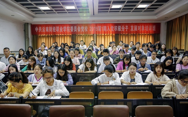 为贯彻落实中组部《中国共产党党员发展工作细则》,进一步规范党员发展工作,推进“两学一做”学习教育常态化制度化走向深入,按照《党章》、《发展党员工作细则》、《新形势下党内政治生活若干准则》及入党积极分子的确定和培养教育要求,2018年4月23日上午,中共云南财经职业学院委员会党校2019年第1期入党积极分子发展对象培训班开班。