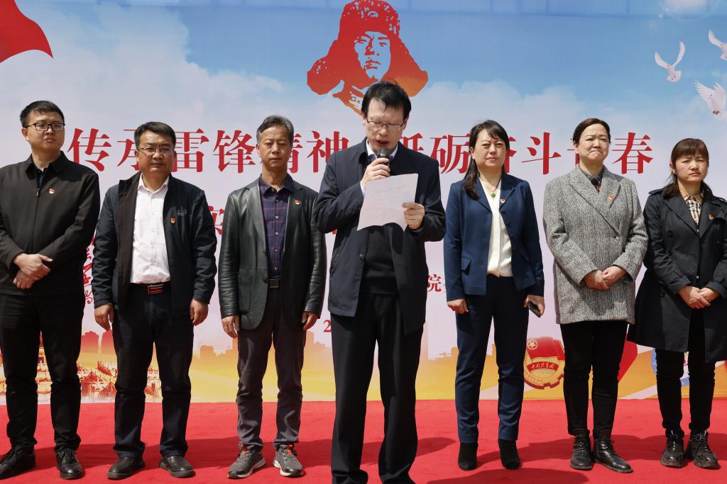 为深入学习党的二十大精神,贯彻落实习近平总书记对深入开展学雷锋活动作出的重要指示精神,大力弘扬“奉献、友爱、互助、进步”的志愿精神,进一步开展好我校大学生学雷锋志愿服务工作,3月6日,学校举办“传承雷锋精神 砥砺奋斗青春”实践教育活动月启动仪式,学校领导、职能部门负责人、二级学院书记以及来自各二级学院的百余名志愿者参加了仪式。