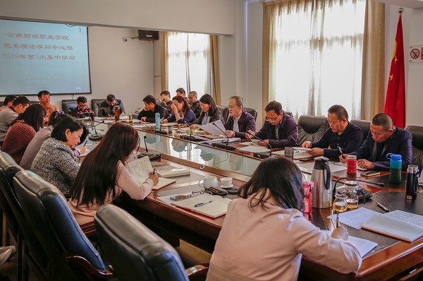 2019年3月25日上午8:40分,学校党委在办公楼一会议室进行党委理论学习中心组第1次集体学习。学习由党委书记李思泽同志主持,党委副书记、院长陶昌学同志,党委委员、纪委书记杨红英同志,党委委员、副院长李树伟、沈豫琼同志,党委委员、院长助理彭锋泽同志,党委委员、组织部长张国庆同志,党委委员、宣统部副部长陈君奇同志和中层管理干部、基层党组织支委参加学习。为保证学习效果,学校党委要求参学人员3月22日抓好自学,突出学深学透,学悟结合。