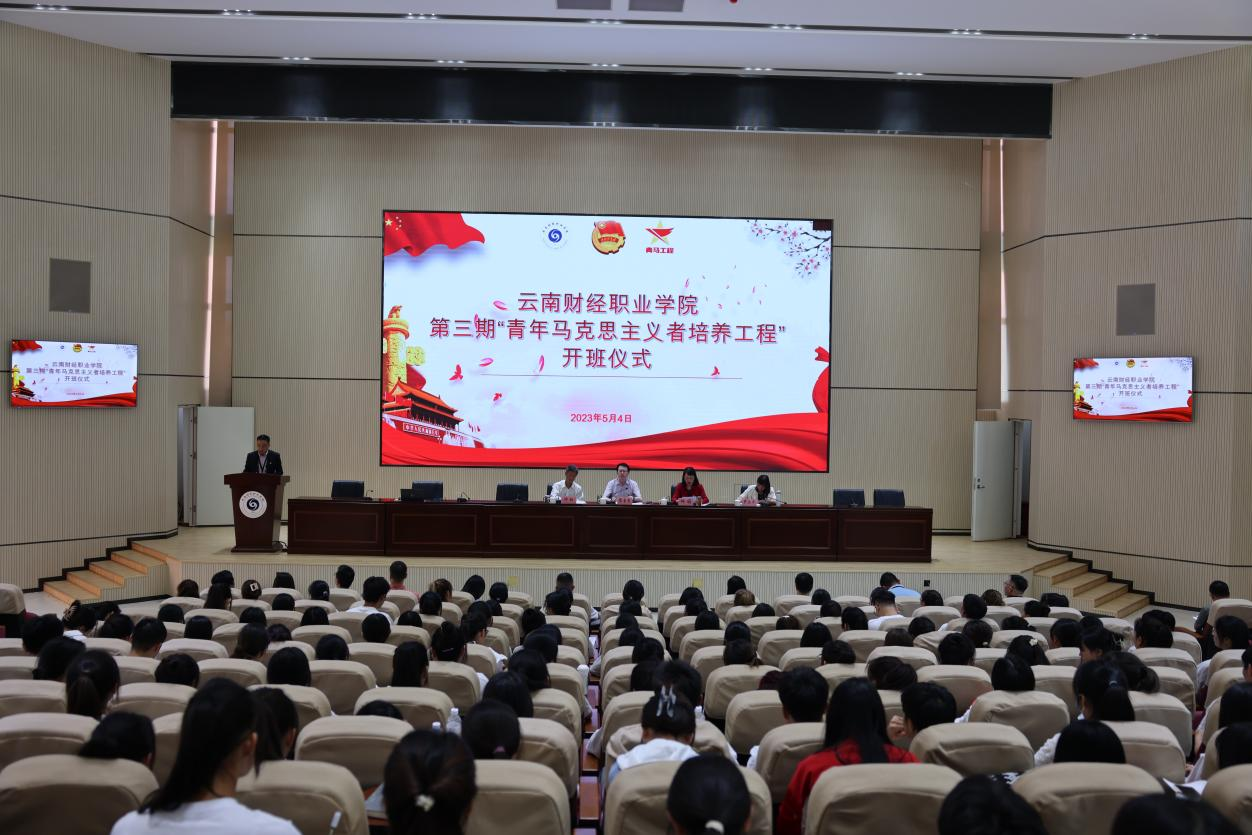为深入学习宣传贯彻习近平新时代中国特色社会主义思想,领悟并践行党的二十大精神,进一步加强我校学生骨干的理论基础和实践能力,着力培育一批信仰坚定、能力突出、素质优良、作风过硬的青年政治骨干。2023年5月4日下午,我校在铭德楼报告厅举行了第三期“青年马克思主义者培养工程”开班仪式。学校领导、“青马工程”工作领导小组成员、各班级团支部书记以及第三期“青马工程”培训班全体学员参加,仪式由校团委书记王俊奇主持。