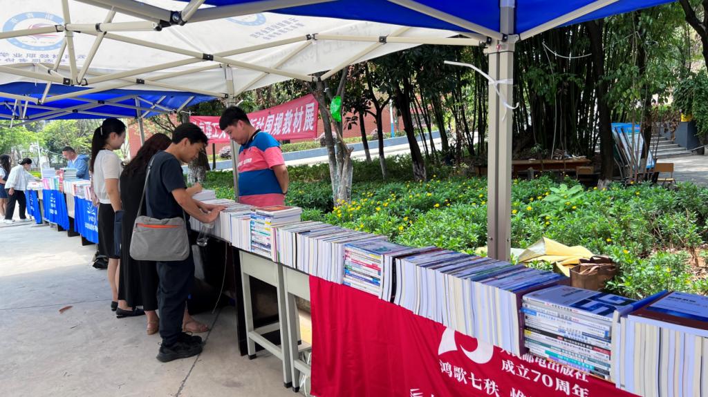 书展现场,虽烈日炎炎,却挡不住师生们高涨的热情。此次捐赠纸质图书共计1600余册,内容涵盖公共课、计算机信息类、工商管理类、财经类、会计类、学前教育类、物流类、数媒、电商新媒体等多个学科领域。