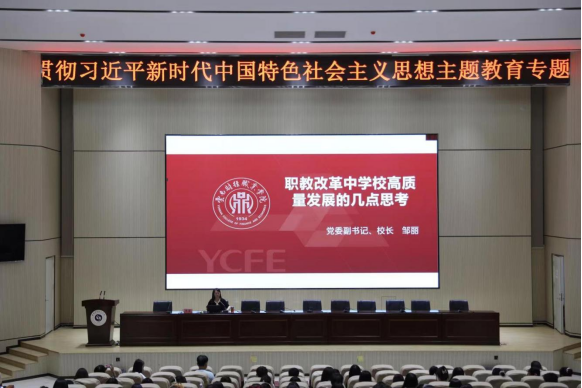 学校党委副书记、校长邹丽为同学们讲授了“职教改革中学校高质量发展的几点思考”。授课围绕“职业教育这十年”“职业教育现状”“职业教育的未来”“学校高质量发展的几点思考”展开,由浅入深地介绍了职教的“四项建设”“四项改革”“四大布局”,重点介绍了我校发展的现状和未来发展的规划。她鼓励同学们在职业教育发展的浪潮中明确自己的方向,结合自身特长确定职业生涯目标,在学习实践的过程中不断提升自己的综合素养。