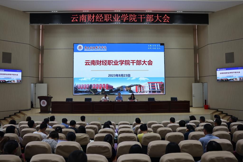 2023年8月23日下午,学校召开2023年秋季学期干部大会。校党委书记张金甫,校党委副书记、校长邹丽总结2023年上半年工作和取得的成效,部署下半年工作重点,提出工作要求。校党委副书记仲新主持会议。