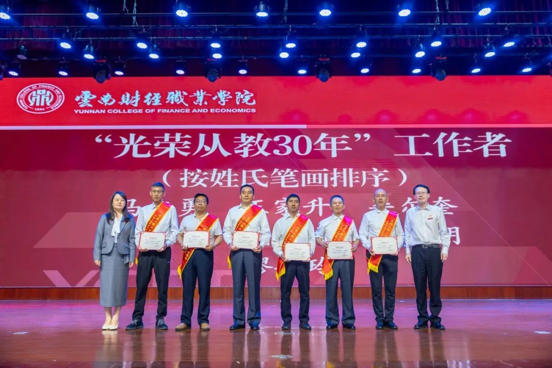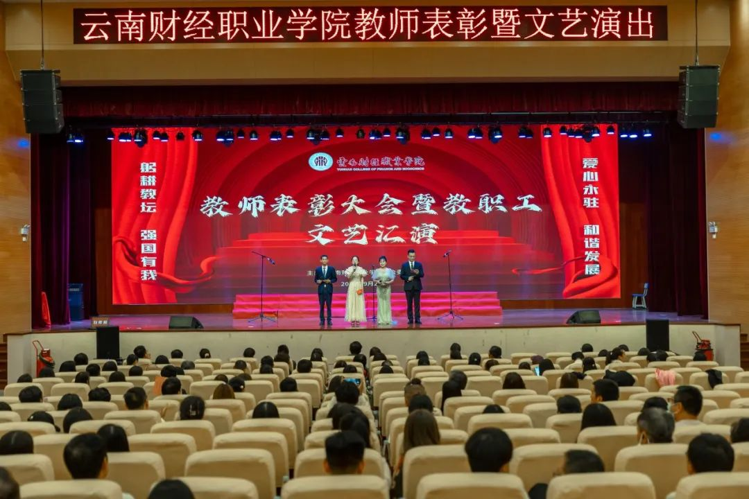 表彰会上,师生欢聚一堂,通过合唱、诗歌朗诵、舞蹈、情景剧等表演形式展示了云财职师生昂扬向上、锐意进取的精神风貌,体现了学校师生团结、温馨、和谐的校园氛围,表达了全校师生对新时代的赞美,对伟大祖国的美好祝福。