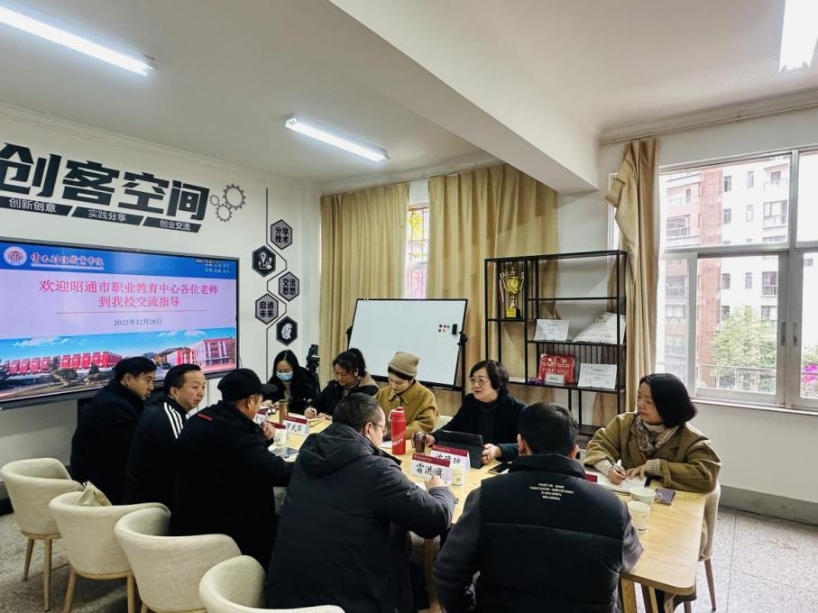 2023年12月26日,昭通市职业教育中心党委委员、副校长雷洪旗一行5人到我校开展调研交流。学校党委委员、副校长沈豫琼出席会议。