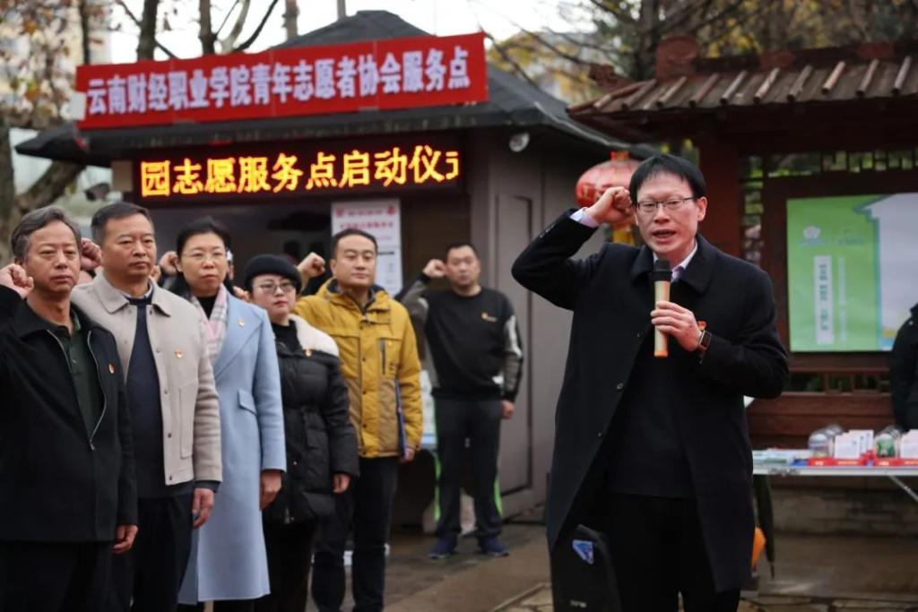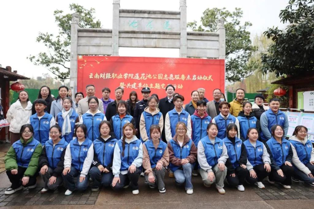 为深入贯彻落实习近平新时代中国特色社会主义思想,践行社会主义核心价值观,大力弘扬志愿服务精神,12月29日上午在莲花池公园举行云南财经职业学院莲花池公园志愿服务点启动仪式暨共建单位主题党日活动。云南财经职业学院、五华区莲华街道学府社区、五华区公安分局禁毒大队、云南中威民族文化传播有限公司、五华区国有资产投资管理有限公司参加仪式。