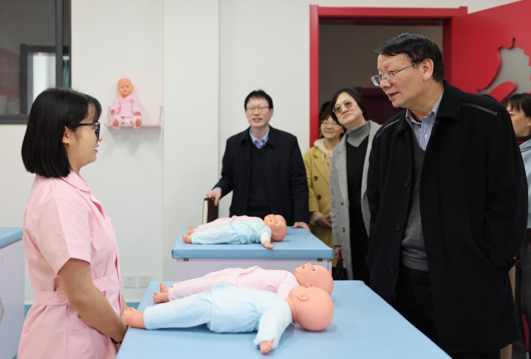 陈世波一行实地察看了学校校园布局和环境,先后深入到实训中心、心理健康教育咨询中心、婴幼儿实训基地、文化走廊、大数据监督中心、继续教育学院、校史馆、学生公寓党建书屋等地实地调研,认真听取了学校党建工作、学生心理健康教育和“一站式”学生社区推进、学生就业创业、人才培养、办学达标工程建设以及国际交流合作等方面的汇报。