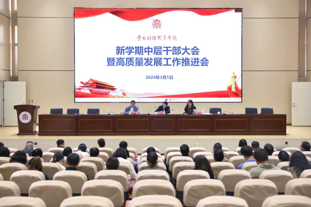 为全面推动2024年学校重点工作,根据2024年全国、全省教育工作会议精神,结合学校“十四五”规划和“1186”行动计划,2024年3月1日上午,学校召开新学期中层干部大会暨高质量发展工作推进会,全力推动学校高质量发展迈上新台阶。学校党政班子出席会议,全体中层干部参加会议,党委书记张金甫主持会议并讲话,纪委书记马加巍提出廉政工作要求。
