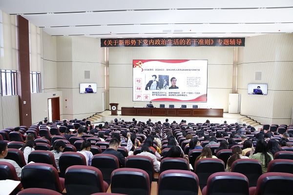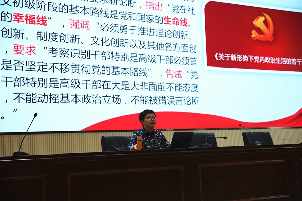 为了落实全面从严治党的要求,扎实推进"不忘初心、牢记使命"主题教育,10月10日,我校邀请省级机关党校钟亚玲教授做了一场《关于新形势下党内政治生活的若干准则》的专题辅导,学校领导班子、全体党员教职工和入党积极分子参加了本次学习。