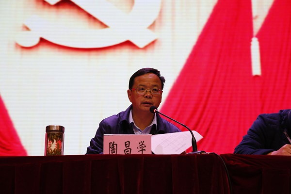 2019年1月11日上午8:40分,学院党委在大礼堂召开2018年度党员大会。学院党委书记李思泽同志,党委副书记、院长陶昌学同志,纪委书记杨红英同志,党委委员、副院长李树伟、仲新、沈豫琼,党委委员、院长助理彭锋泽同志,党委委员、组织部长张国庆同志,党委委员、宣统部副部长陈君奇同志,全体教职工党员、退休党员代表、非党中层干部、民主党派代表、教职工代表等参加了会议。会议由学院党委副书记、院长陶昌学同志主持。