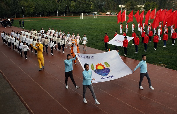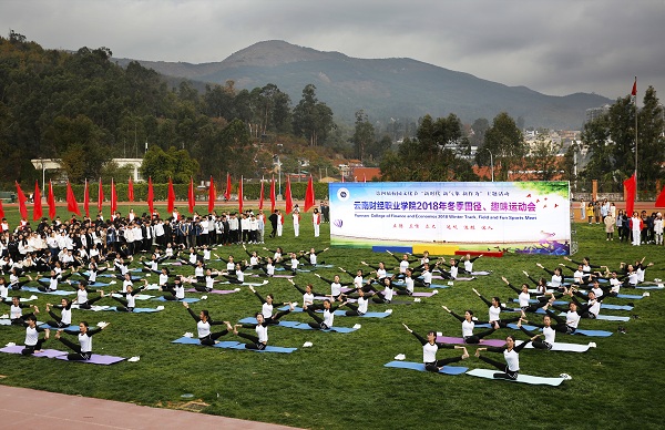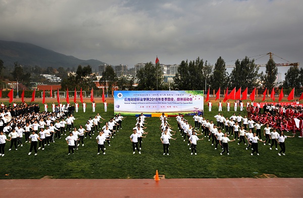 2018年12月12日,云南财经职业学院第四届冬季田径运动会暨教工趣味运动会在学院田径场开幕。学院领导和全校师生员工出席了开幕式。开幕式由仲新副院长主持,李思泽书记致开幕词并宣布运动会开幕。
