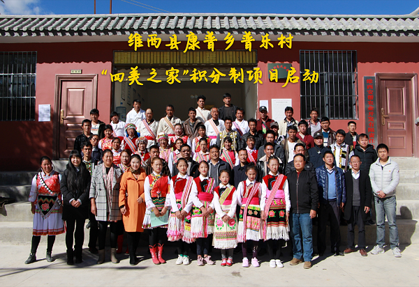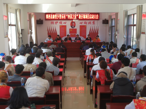 2018年12月3日,维西县康普乡“四美之家”积分制项目在普乐村新联鸭子塘正式启动,启动仪式由康普乡普乐村主办,上海宝山区委统战部及维西县扶贫办协办。启动大会于2018年12月3日上午10:30分开始举行,到会的人员有维西县委领导、维西县扶贫办、维西县各乡镇代表、康普乡党委和政府领导、普乐村两委及驻村工作队、普乐村各党支部书记、组长、妇女组长、以及其他参会人员。大会由维西县委常委、县人民政府常务副县长李文同志主持。康普乡乡长钱继云同志首先介绍了康普乡“四美创建”工作情况;我校驻普乐村工作队员郑炯惠同志介绍“四美之家”积分制项目运行模式;普乐村党总支书记杨雪彬同志对普乐村开展争积分促四美创建作要求:维西县扶贫办主任胡志远同志以做实“四美之家”促脱贫攻坚工作的发言;维西县委书记格桑纳杰同志作重要讲话。