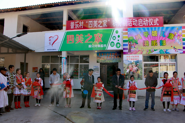 启动大会结束后,大家相拥走向“四美之家”积分兑换超市,在“没有共产党就没有新中国”的歌曲声中,格桑书记、李文常务副县长、康普乡钱继云乡长、普乐村党委杨雪彬书记共同为“四美之家”积分兑换超市剪彩!各位领导和各乡镇代表兴高采烈地参观了积分超市,并耐心询问了具体操作情况。更为有意义的是大家共同为“四美之家”积分超市题写了心愿和祝福,维西县扶贫办主任胡志远同志给我们的题词是“村庄美、家庭美、人更美,摆脱贫困、共建小康”康普乡钱继云乡长的题词是“四美创建助力康普脱贫”,维西县知名记者杨洪程也情不自禁写下“新模式将在三江腹地开花结果”,其他各乡镇代表、来宾和村民也都题写了祝福。