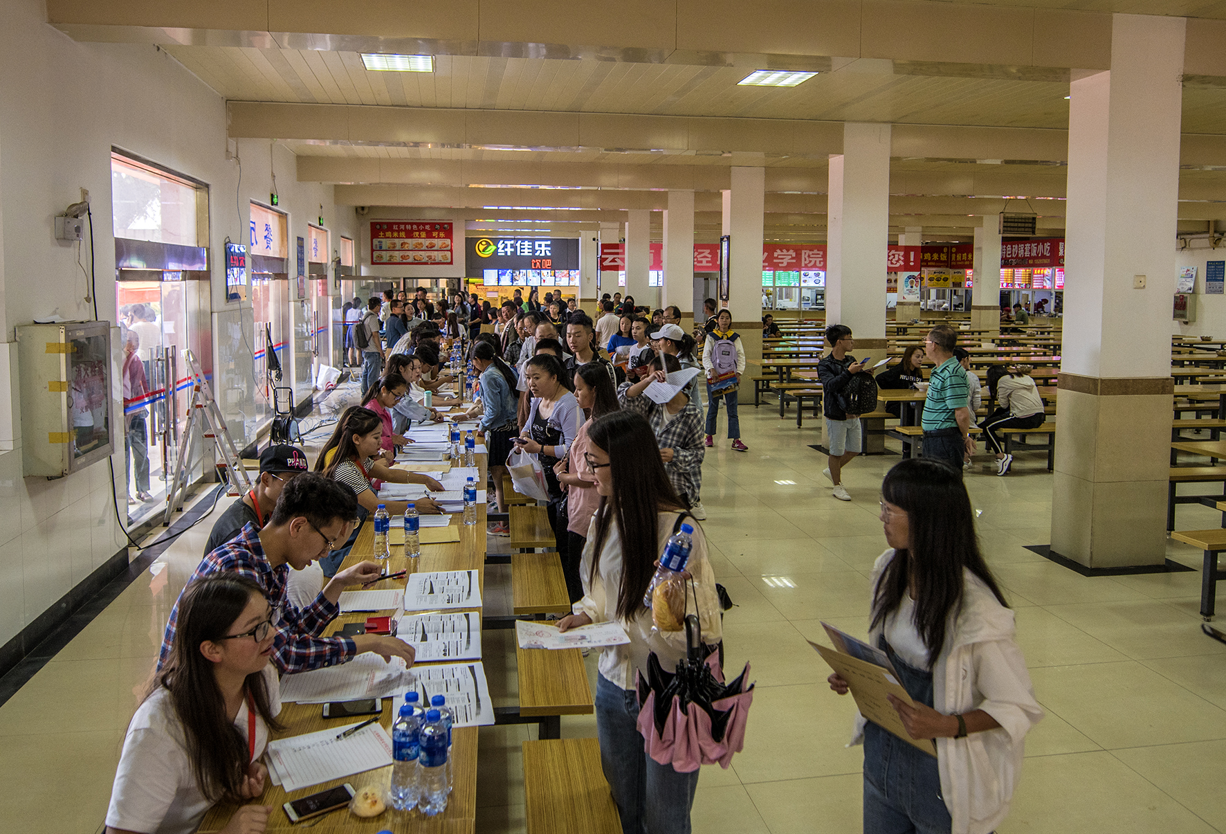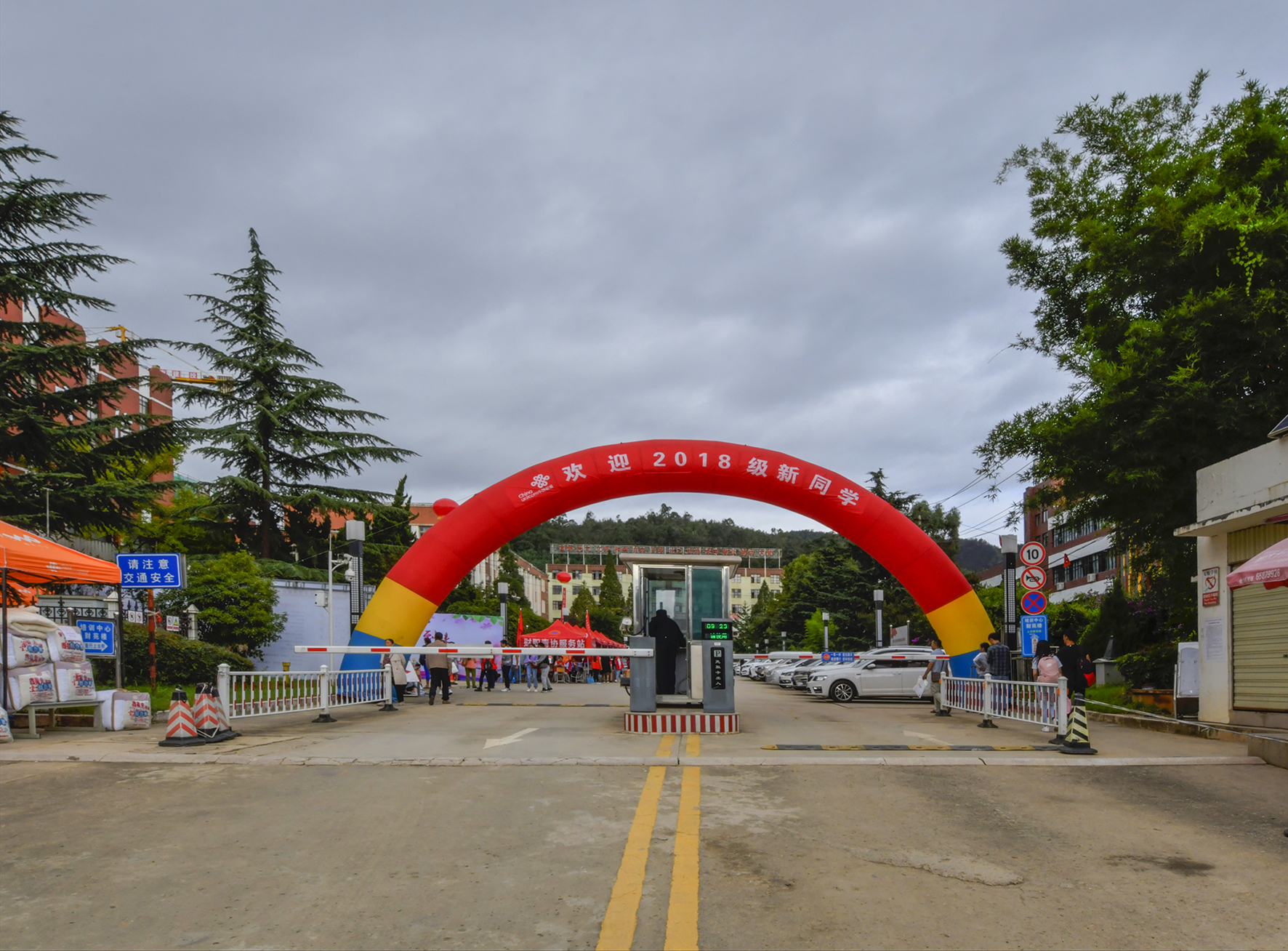为热烈欢迎2018级新同学,云南财经职业学院门口高大的彩虹门、飘扬的气球、缤纷的迎新横幅,大厅内整齐划一,使迎新现场变得既有声有色又井然有序。上午9时,我院迎新工作进入高峰期,大量新生前来报到,接待处工作量骤然上升,整个迎新现场人声鼎沸,到处都有迎新工作者忙碌的身影。在新生报到处,学院党政领导深入到迎新现场指导工作,招生就业处、教务处、学生处、保卫处、财务处等相关部门迎新工作人员都在忙碌的开展迎新相关工作;各教学系书记、辅导员及班主任们在迎新现场耐心的为新生和家长答疑解惑;学生会、志愿者们热情地带领新生办理各项入学手续,帮助新生提送行李,给他们带路,边走边解答学生和家长提出的关于生活和学习的问题。