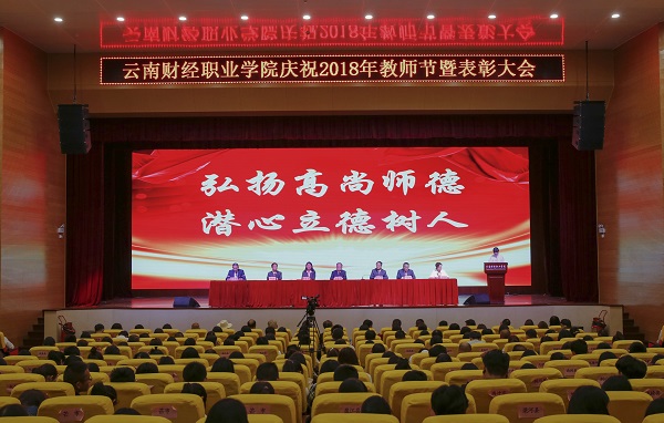 党委副书记、院长陶昌学同志宣读《中共云南财经职业学院委员会关于在2018年教师节表彰先进集体和个人的决定》,并向受到表彰的先进集体和优秀个人表示热烈的祝贺;副院长沈豫琼同志宣读《云南财经职业学院学术委员会关于教育教学表彰的决定》。