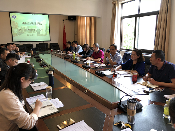 2018年5月30日下午14点30分,云南财经职业学院2018年第二季度就业专题工作会在学院第一会议室召开。学院党委书记李思泽、院长陶昌学、副院长沈豫琼、院长助理彭锋泽、相关部门负责人及各系部主任和书记,2015级大专班主任及招就处就业工作人员等参加了本次会议。会议由招生就业处组织召开,院长助理彭锋泽同志主持。