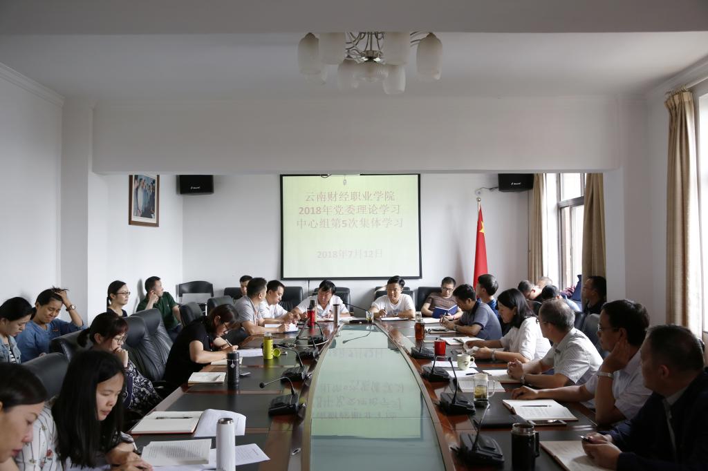 为进一步贯彻落实党的十九大提出的目标任务,深入学习领会习近平新时代中国特色社会主义教育思想,不断增强打赢脱贫攻坚战的决心与信心,学院党委于2018年7月12日在办公楼一会议室举行理论学习中心组第5次集体学习,学院党委书记李思泽同志,党委副书记、院长陶昌学同志,纪委书记杨红英同志,副院长李树伟同志、副院长沈豫琼同志,院长助理彭锋泽同志、全体中层干部以及基层党组织支委参加了会议,会议由党委书记李思泽同志主持。