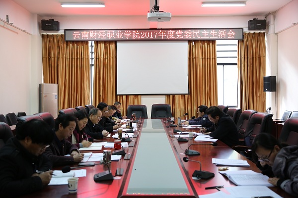 根据《中共云南省纪律检查委员会 中共云南省委组织部转发中共党员中央纪委机关 中共中央组织部关于开好2017年度县以上党和国家机关党员领导干部民主生活会文件的通知》要求,学院党委于2018年1月19日9:00在财苑楼会议室召开了2017年度民主生活会。省财政厅直属机关党委督导组成员桑茂清同志到校对学院党委民主生活会进行考核。学院党委书记李思泽同志,党委副书记、院长陶昌学同志,纪委书记杨红英同志,副院长李树伟同志、副院长仲新同志、副院长沈豫琼同志,院长助理彭锋泽、刘宁飞同志,组织人事处、宣传统战部等部门负责人参加了民主生活会。