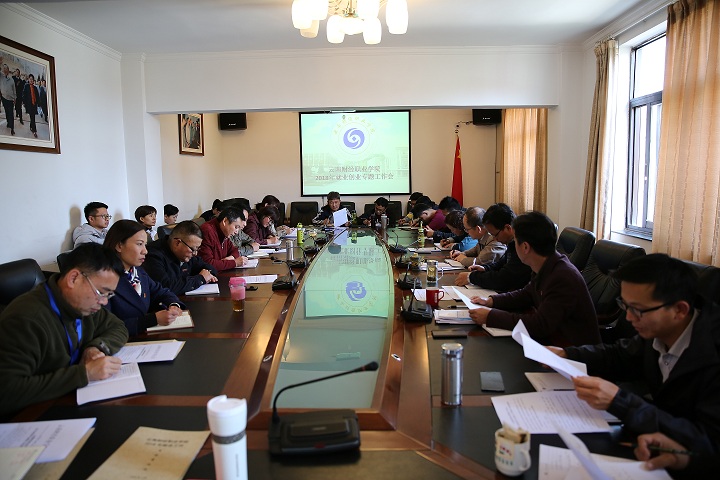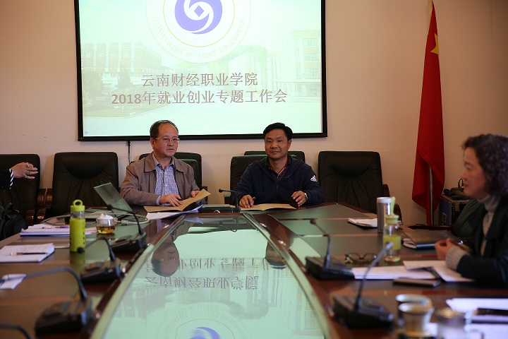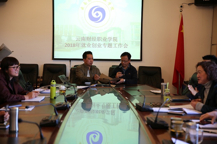 2018年3月12日下午14点30分,云南财经职业学院2018年就业创业专题工作会在学院第一会议室召开。出席会议的领导有学院党委书记李思泽、院长陶昌学、副院长仲新、副院长沈豫琼,招就处处长严颖、团委书记李超强、教务处处长李中京、学生处副处长马佳佳、各系部主任及书记及系部辅导员,2018届毕业生的大中专班班主任及招就处就业工作人员等参加了本次会议。会议由招生就业处组织召开,仲新副院长主持。